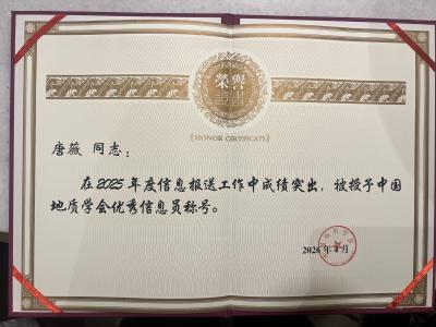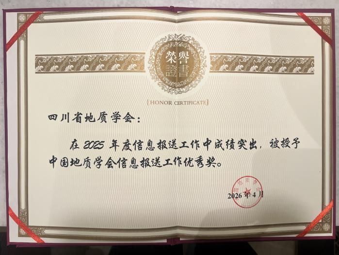 会议还对年度先进集体与个人进行表彰。四川省地质学会凭借扎实的工作成效,一举斩获2025年度优秀信息员、2025年度信息报送工作优秀奖、2025年度工作优秀奖三项重磅荣誉。三项荣誉的获得,是中国地质学会对我会过去一年工作的认可与鼓励,凝聚着上级主管部门的悉心指导,也是学会全体人员踏实履职、稳步推进各项工作的成果体现。