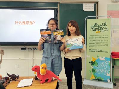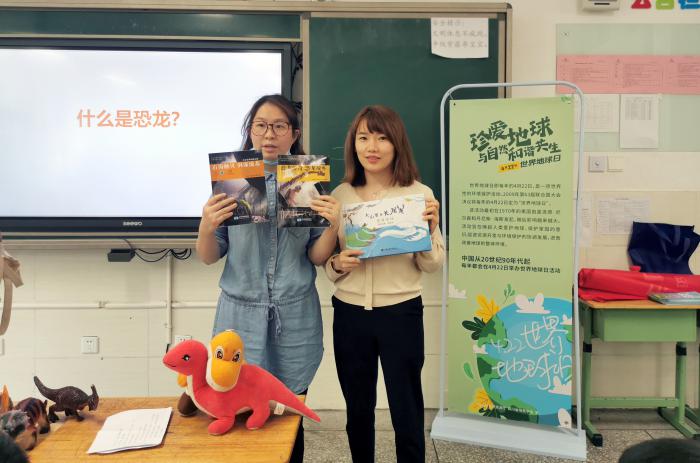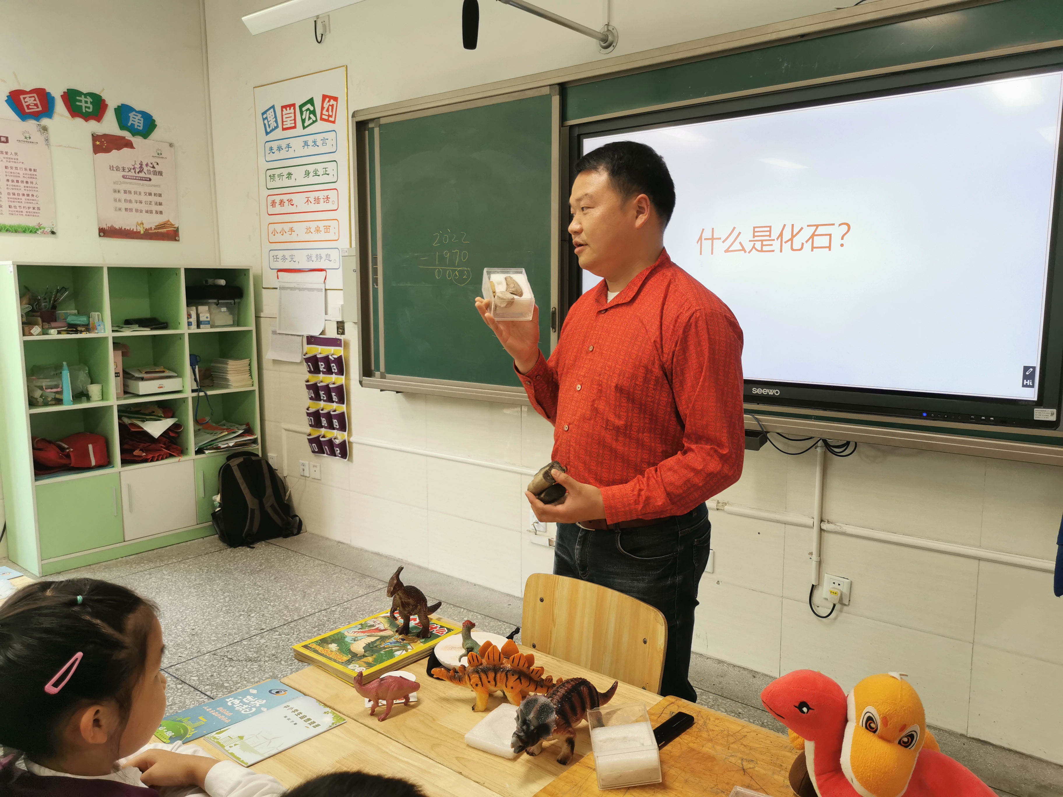 22日中午,我会与省厅主办的系列科普知识讲座又来到了成都师范银都紫藤小学。这次邀请到成都侏罗纪学堂联合创始人李飞老师给同学们授课。四川省地质学会副秘书长唐薇、朱桃秀和银都小学一年级四班的50余名师生共同聆听了《走进恐龙世界》。
