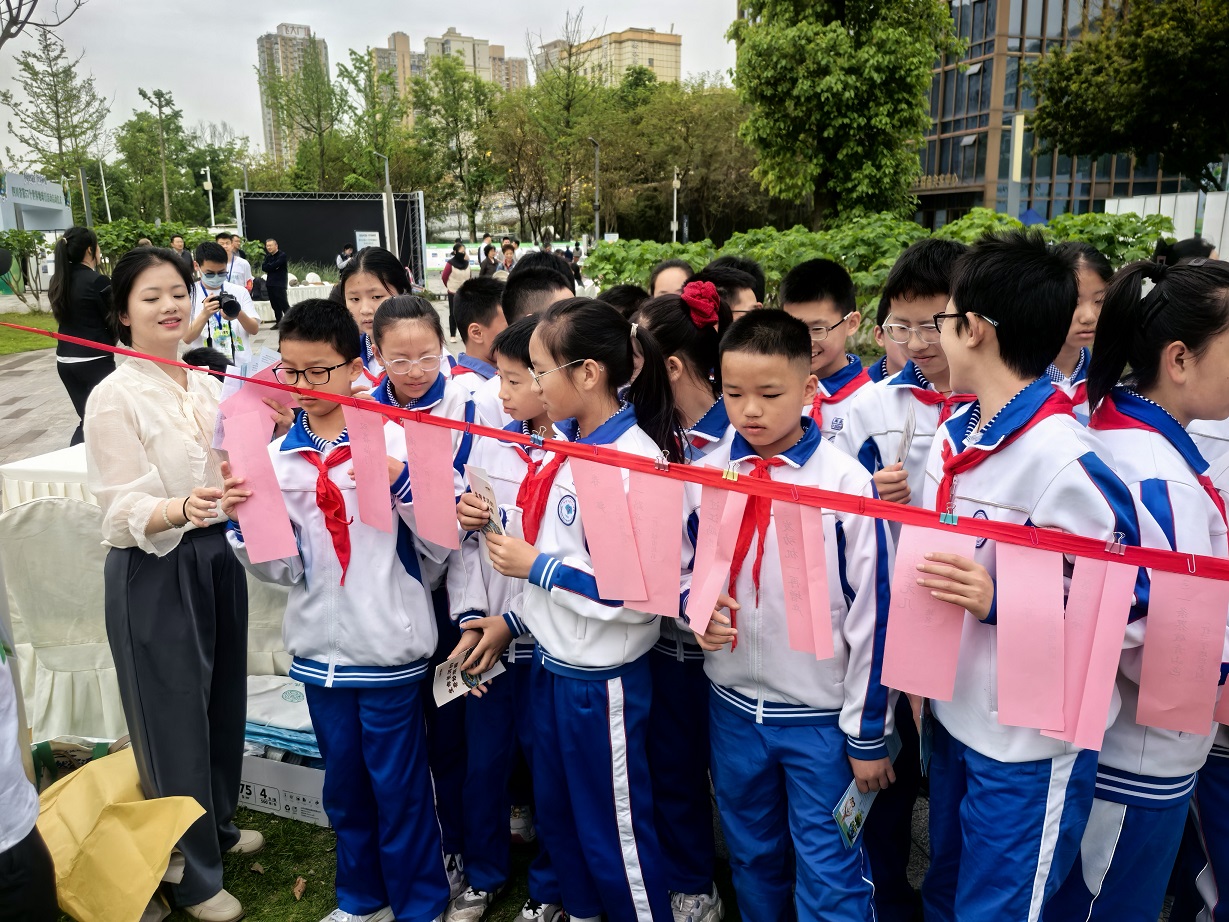 军民融合中心、四川省地质学会组织的地学主题科普猜谜、答题闯关等游园活动,将现场氛围推向高潮。参与者每答对一道地质知识题,就能获得一份精美文创小礼品,在趣味互动中学习地学知识、了解地质文化,让科普变得生动有趣、深入人心。