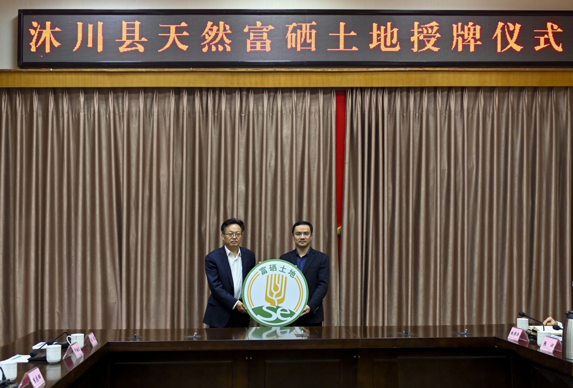 11月22日,四川省自然资源厅二级巡视员、省地质学会理事长陈东辉,秘书长秦钢一行代表中国地质学会赴沐川县对“第二批天然富硒土地”颁发认定证书。沐川县县委书记余斌,县委副书记、县长赵星等县政府部门领导出席授牌仪式。授牌仪式上,陈东辉理事长代表中国地质学会向沐川县授牌,秦钢秘书长颁发认定证书。陈东辉理事长指出,富硒土地的有效利用与开发,将为打造特色农业、效益农业奠定坚实的基础,为农民增加收入提供保障。希望沐川能够把握这次机遇,做好“硒文章”,做强“沐川造”农产品品牌,擦亮“乌蒙硒都”金字招牌,为我省农旅跨界融合发展增添新活力。赵星县长表示,将以此次授牌为契机,利用全县丰富的硒资源禀赋,充分发挥富硒优势,打造富硒产品,全力推动富硒特色产业快速可持续发展。