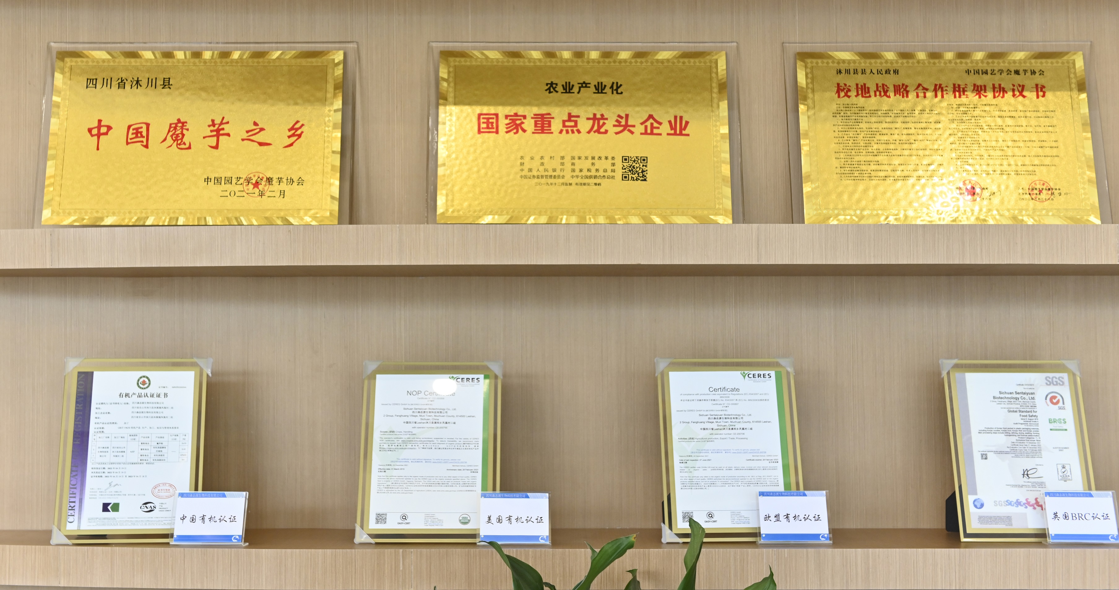 沐川县将魔芋确立为农业“三大”优势特色产业之一,全县现有魔芋基地3000亩,2021年被中国园艺学会魔芋协会授予“中国魔芋之乡”称号,各类魔芋产品获得中、美、英以及欧盟等多个国家和组织有机认证。当日,陈东辉理事长一行在相关县领导陪同下,参观了中国魔芋科技示范园、森态源公司,充分了解了魔芋从培育、移植到产品研发的全过程。沐川县魔芋种植历史悠久,县内魔芋适种耕地面积大,为魔芋种植轮作条件提供基础。加工及销售依托森态源魔芋生物科技公司,具有固定的销售渠道,这为当地发展富硒魔芋特色产业提供良好的基础。魔芋科技示范园是沐川县魔芋产业展示窗口,是现代农业科技成果转化的孵化器和魔芋信息、技术、品种的博览园,以品种展示、良种繁育、科技示范为一体,集成大数据、物联网、智慧农业、绿色防控、农产品溯源、水肥一体化等现代农业要素,配套农旅基础设施。