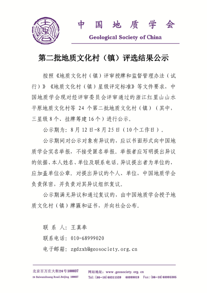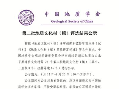 第二批地质文化村(镇)(挂牌筹建)(16个,我会入选1个);