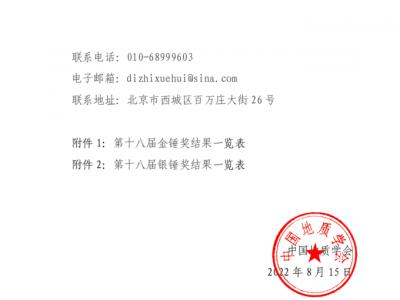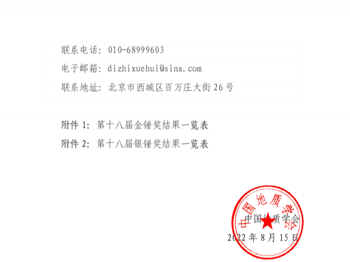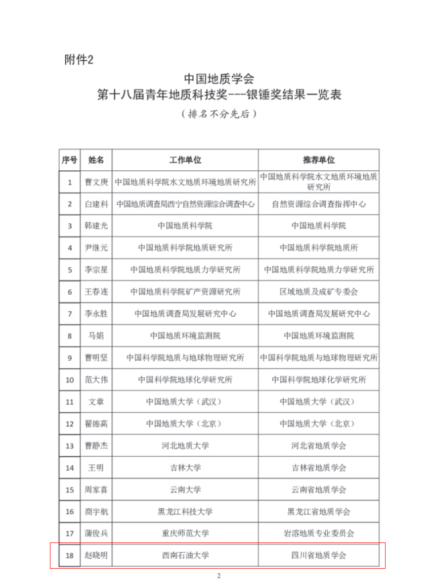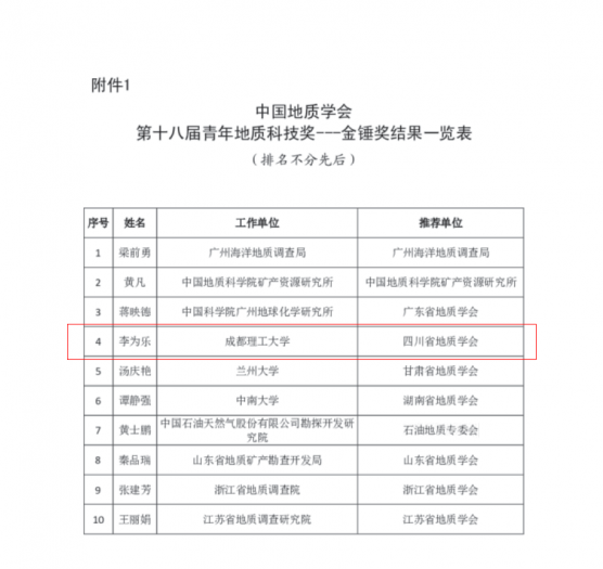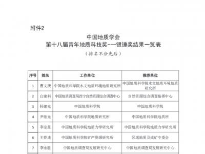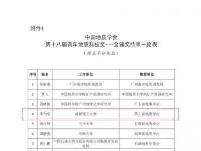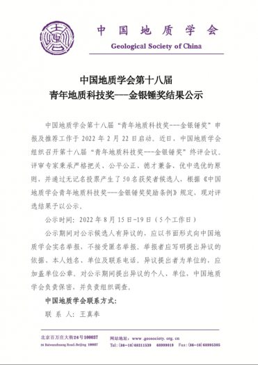 第十八届青年地质科技奖——金锤奖(10名,我会入选1名);