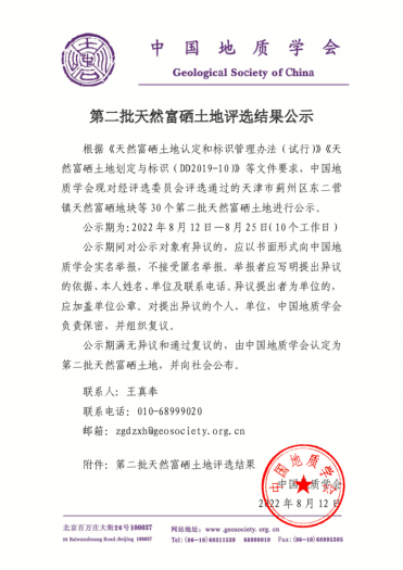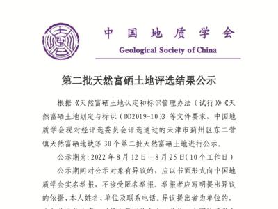 近日,中国地质学会官网正式发布第十八届青年地质科技奖——金银锤奖终评结果、第二批地质文化村(镇)评选结果、第二批天然富硒土地评选结果的公示。其中: