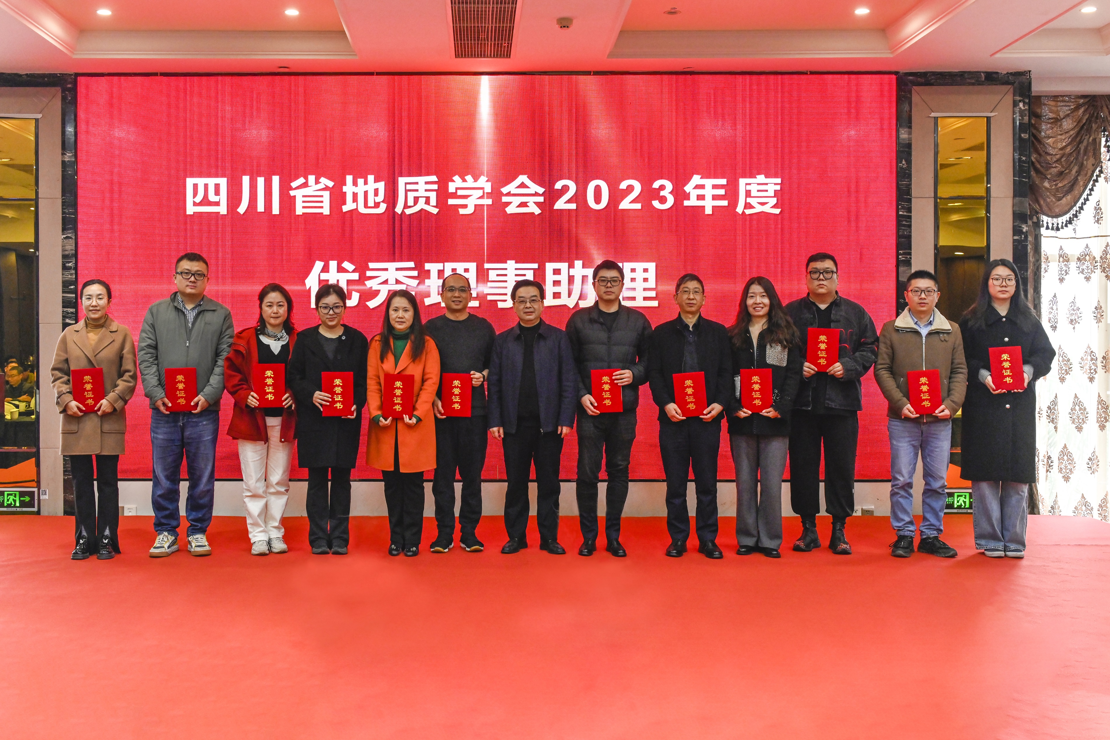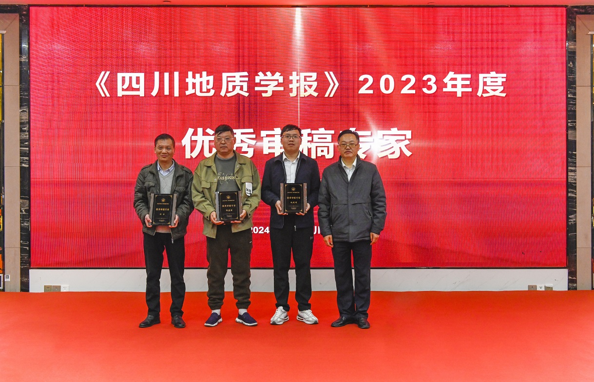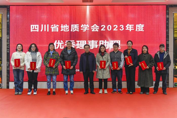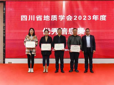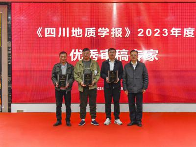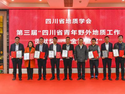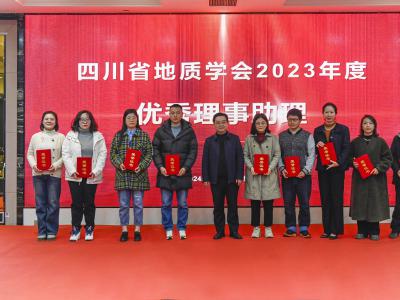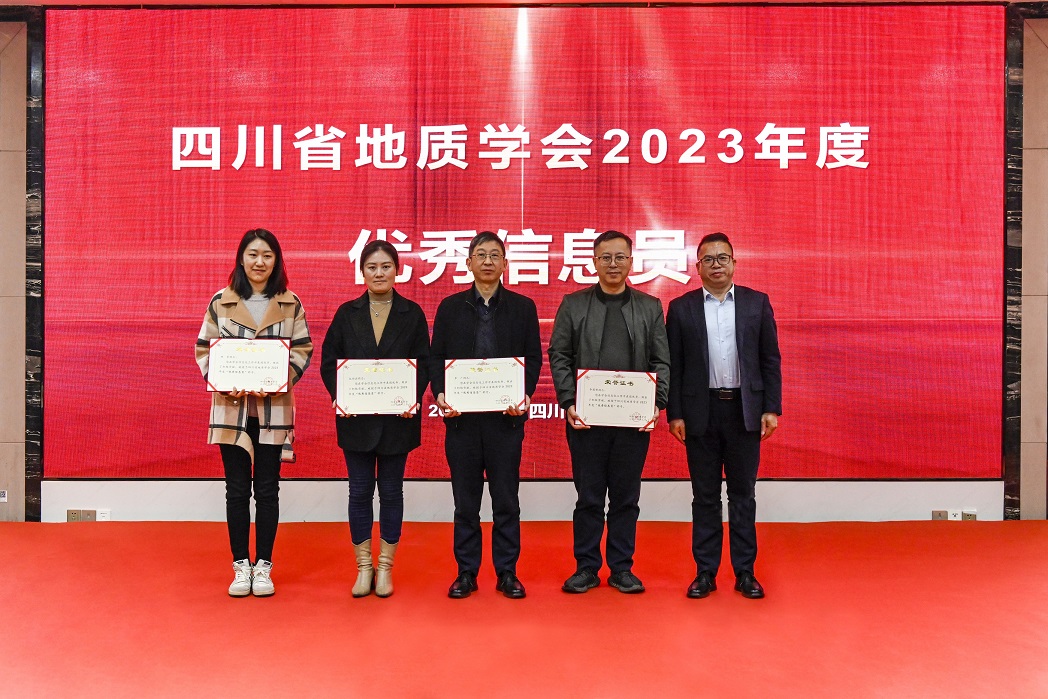 会议对第三届“四川省青年野外地质工作贡献奖——金罗盘奖”进行了表彰,陈东辉理事长为获奖者颁奖;对郭建强等6位专家授予了2023年度《四川地质学报》“优秀审稿专家”称号。会议还对四川省地质学会遥感地质专业委员会等9个专业(工作)委员会授予“2023年度先进专业(工作)委员会”称号,学会副理事长侯明才颁发奖牌;向2023年在学会作出积极贡献和辛勤付出的尹力等24名同志,授予“2023年度优秀理事助理”称号,学会常务理事李仕荣颁发荣誉证书;对在信息化工作中取得显著成绩的颜雪等5名同志,授予“2023年度优秀信息员”称号,省自然资源厅地勘处副处长刘昌明颁发荣誉证书。