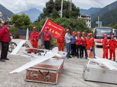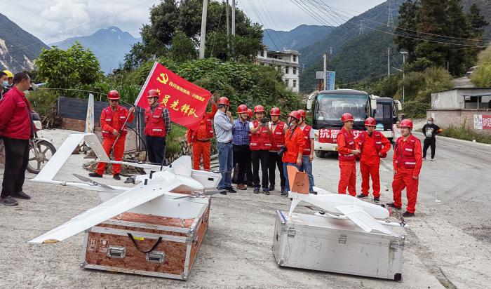 其中,向地震烈度6度及以上的甘孜州泸定县、九龙县,雅安市石棉县、天全县、汉源县共派出17支队伍、89名工作人员,24辆越野车,携带华测P300PRO长航时固定翼无人机、华测AU20长测程固定翼无人机激光雷达、地面三维激光扫描仪optech、蜂鸟Genius机载LIDAR、拓普康全站仪及大疆无人机等各类专业设备20余台,并采用先进的无人机摄影技术进行地质灾害隐患排查。