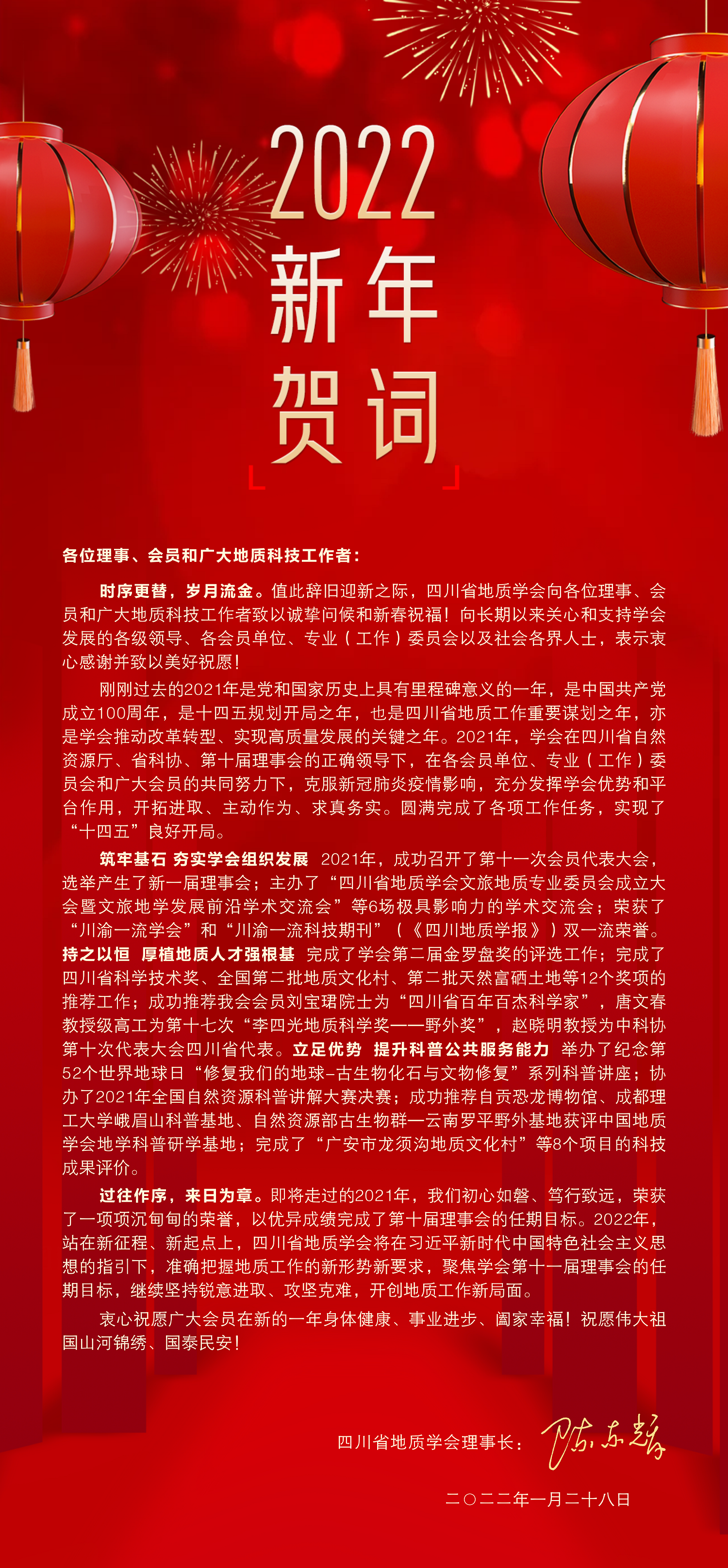 > 学会动态 > 四川省地质学会2022新年贺词 正文