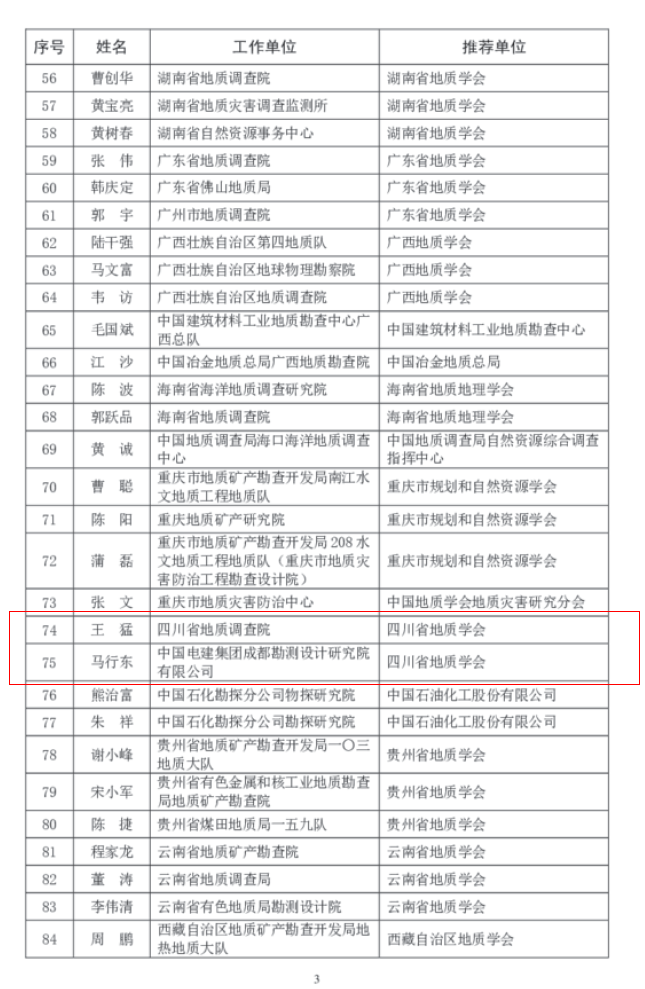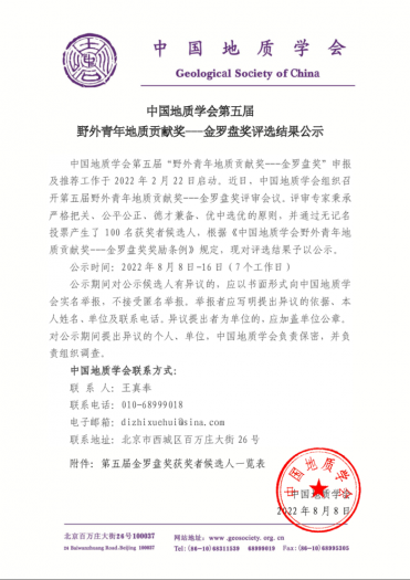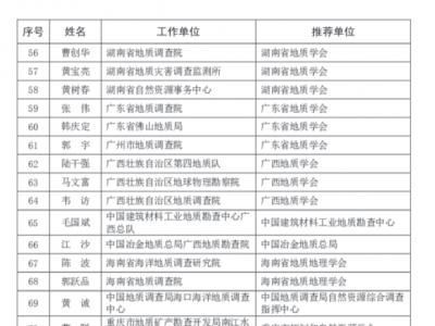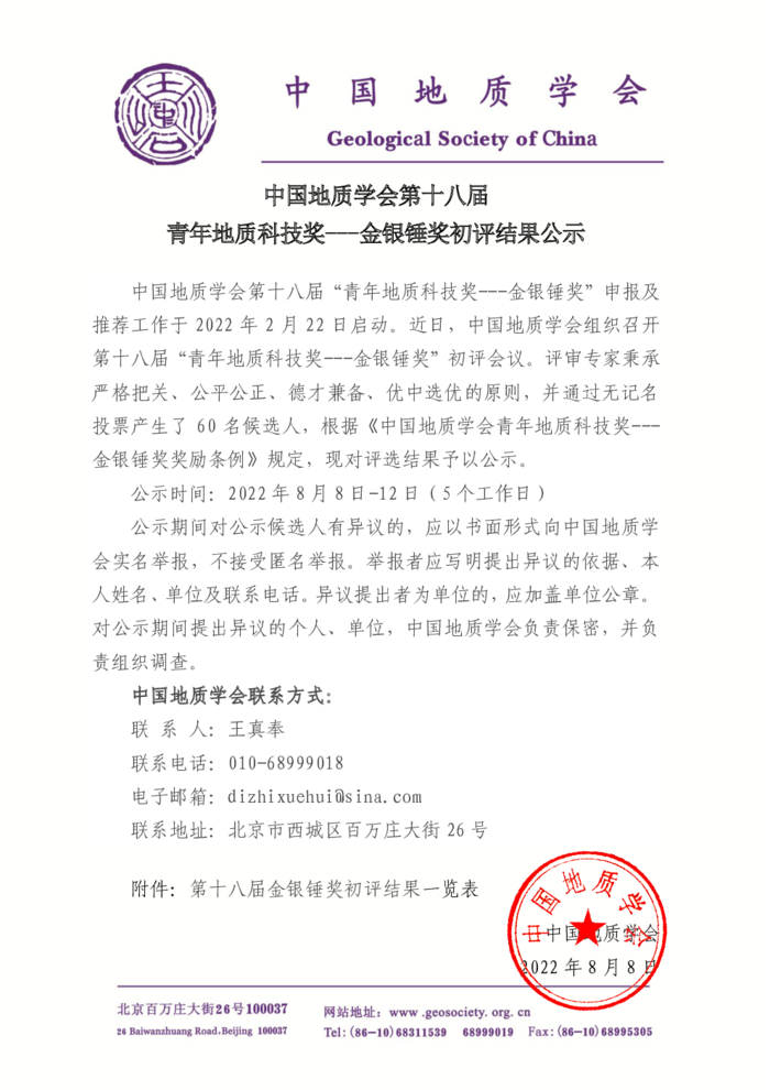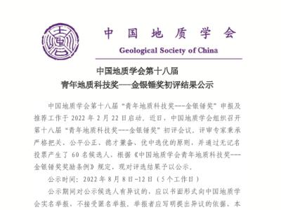 第十八届青年地质科技奖——金银锤奖初评结果(60名,我会入围2名);
