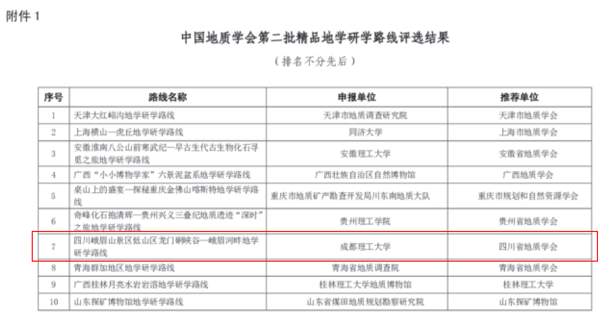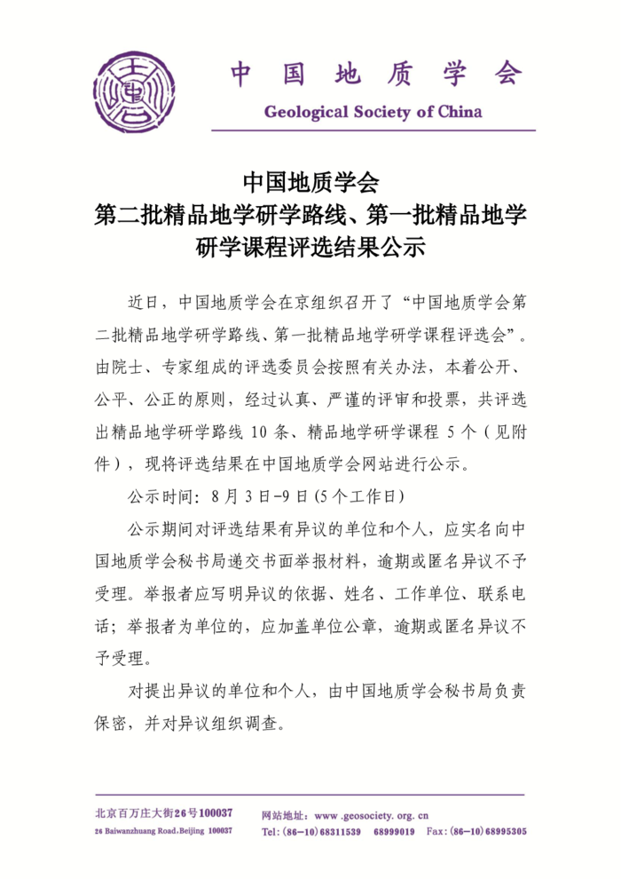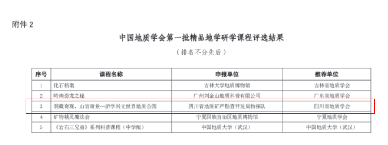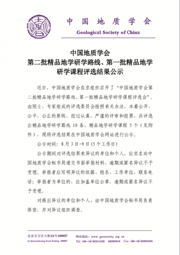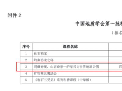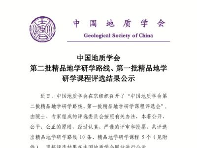 第二批精品地学研学路线(10条,我会入围1条)、第一批精品地学研学课程评选结果(5个,我会入围1个)。