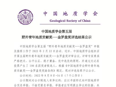 第五届野外青年地质贡献奖——金罗盘奖评选结果(100名,我会入围2名);
