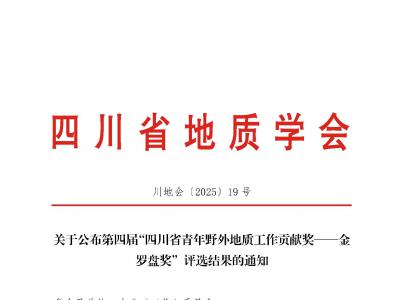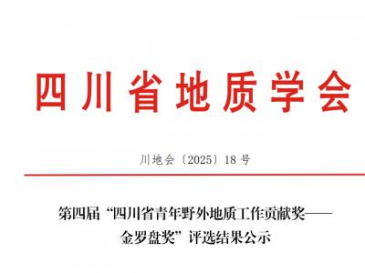 关于公布第四届“四川省青年野外地质工作贡献奖——金罗盘奖”评选结果的通知