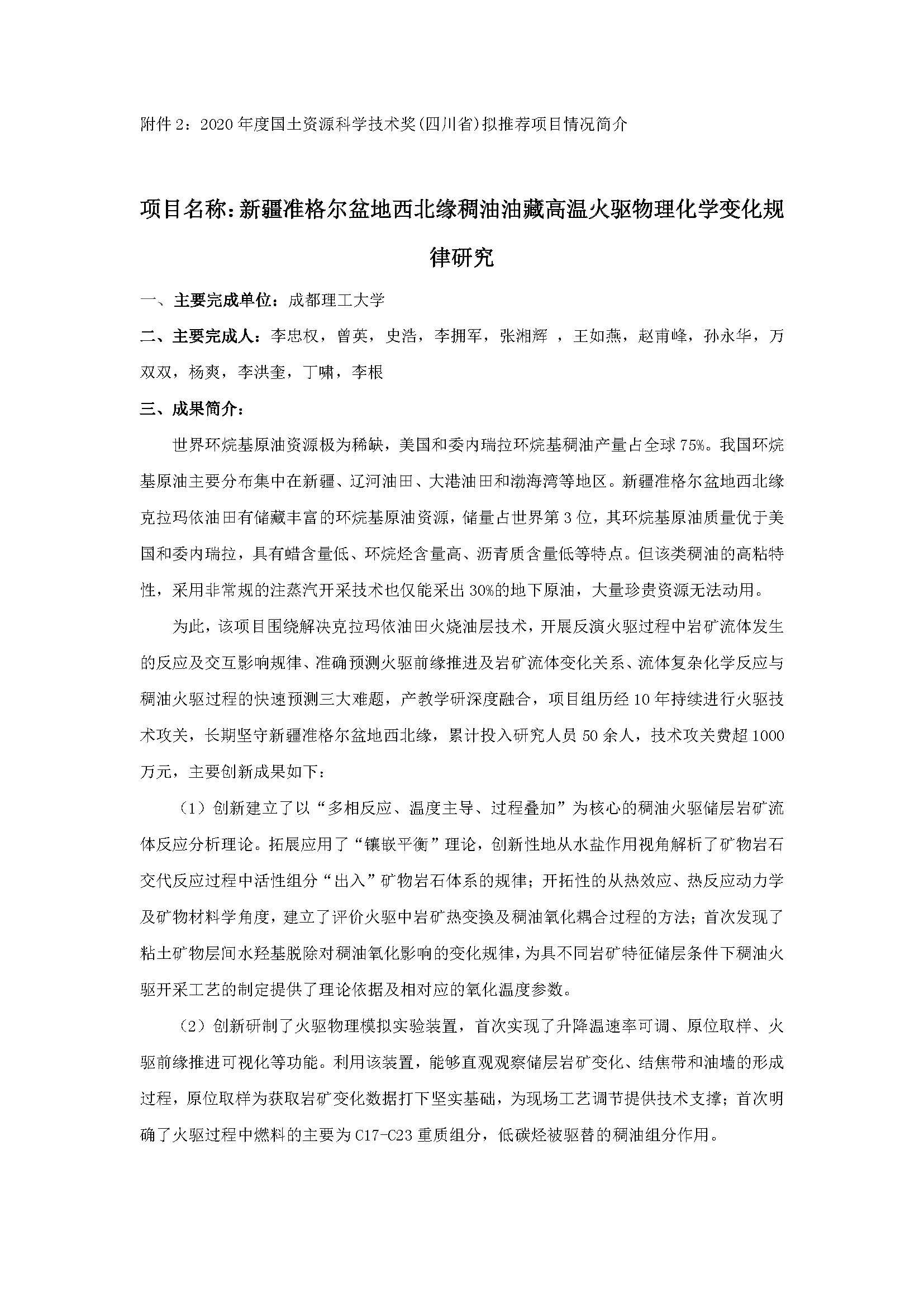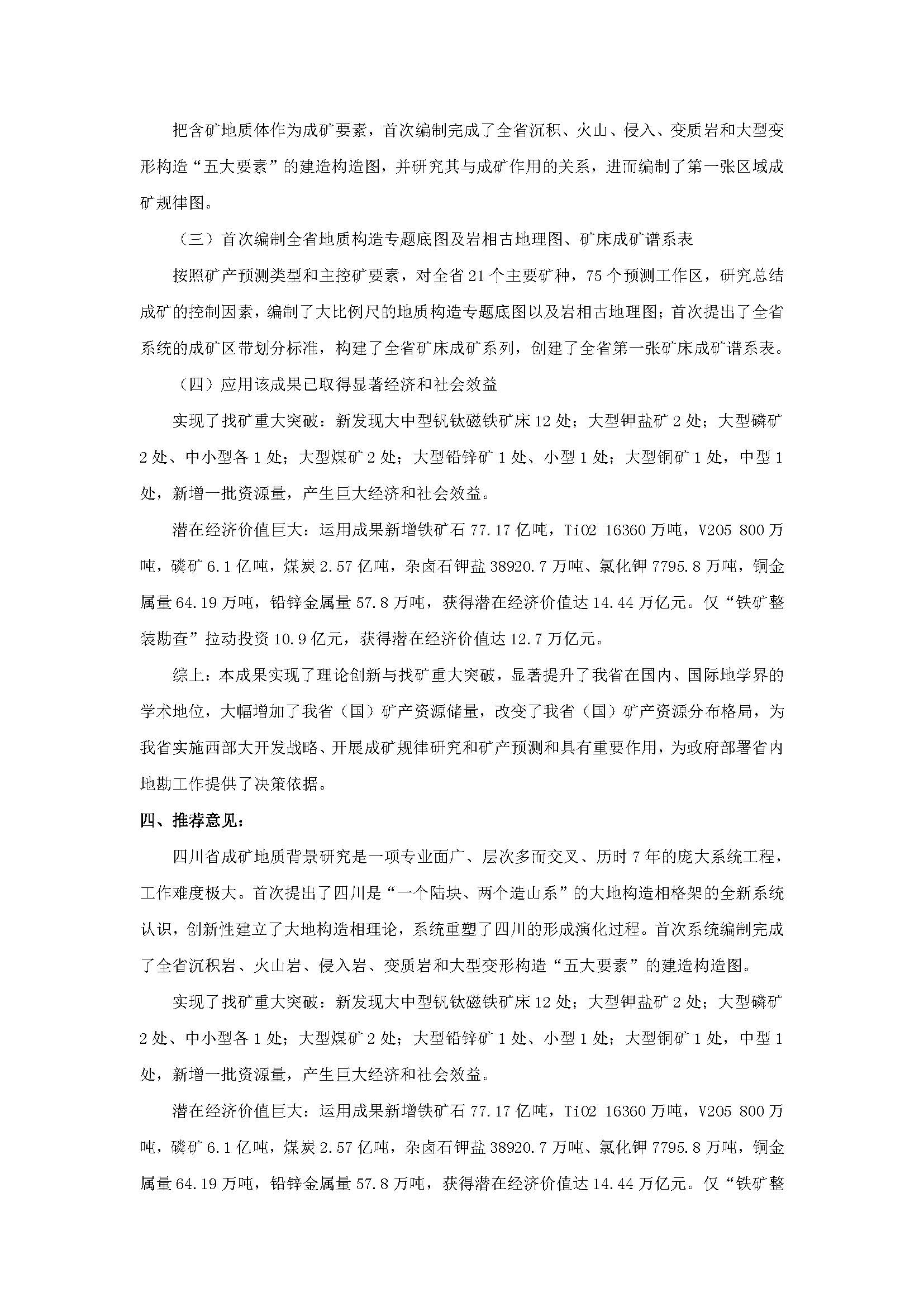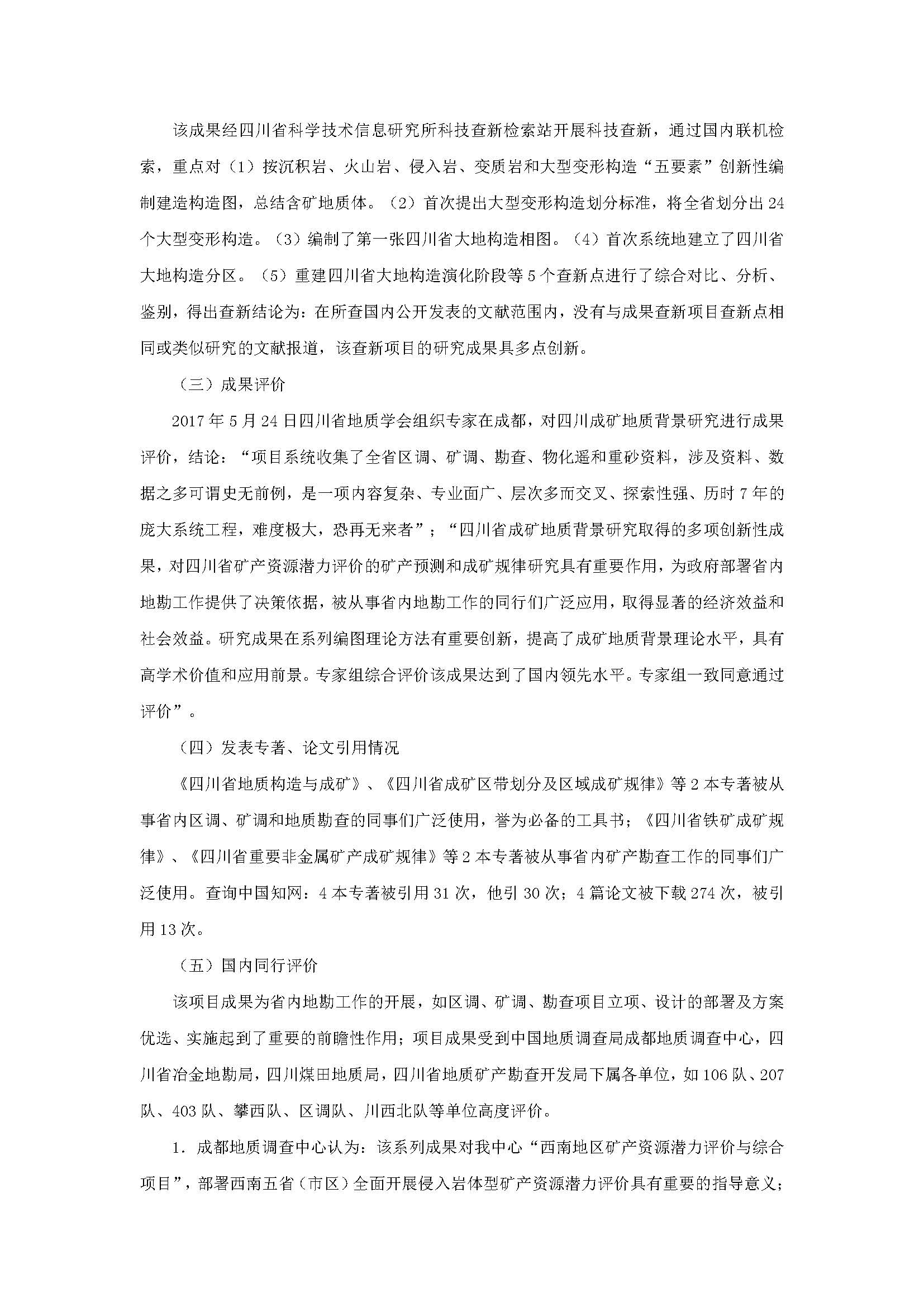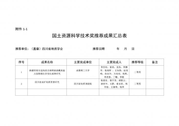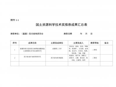 四川省地质学会关于拟推荐2020年度国土资源科学技术奖的公示