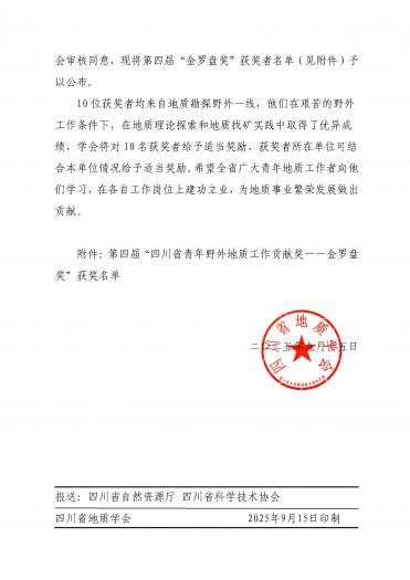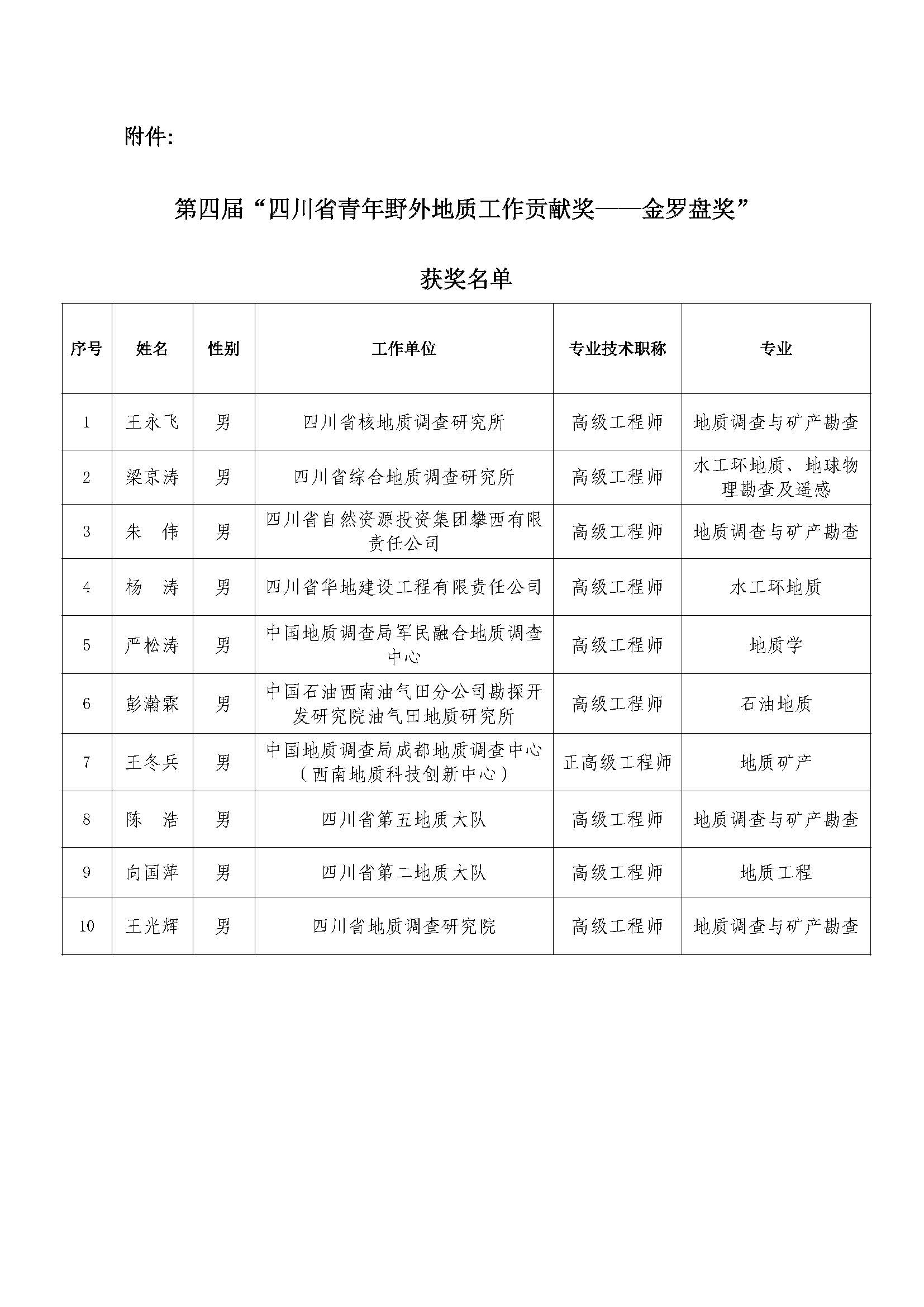 关于公布第四届“四川省青年野外地质工作贡献奖——金罗盘奖”评选结果的通知.pdf