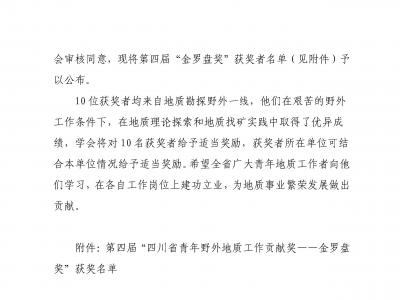 关于公布第四届“四川省青年野外地质工作贡献奖——金罗盘奖”评选结果的通知