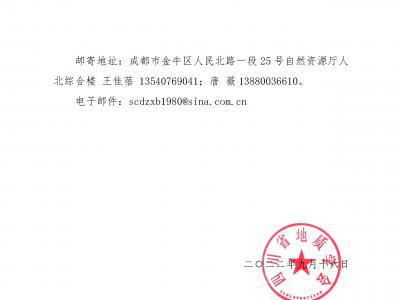 邮寄地址:成都市金牛区人民北路一段25号自然资源厅人北综合楼 王佳蓓 13540769041;唐 薇13880036610。