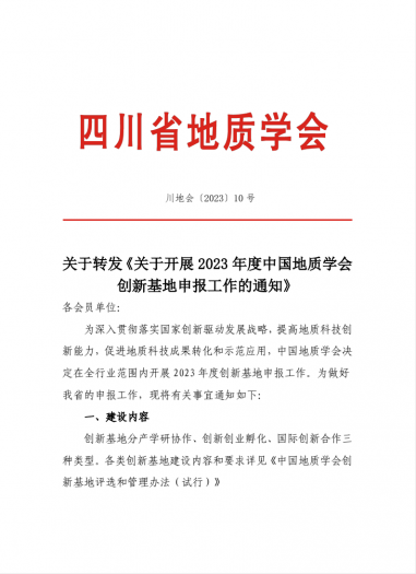 关于转发《关于开展 2023 年度中国地质学会创新基地申报工作的通知》