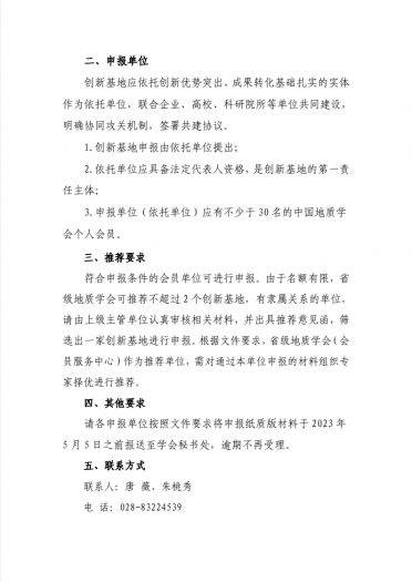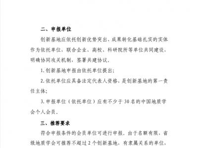 > 学会公告 > 关于转发《关于开展 2023 年度中国地质学会创新基地申报工作的通知》 正文