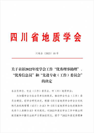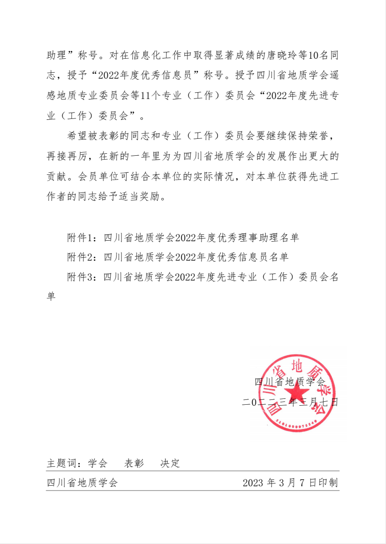 关于表彰2022年度学会工作“优秀理事助理”、“优秀信息员”和“先进专业(工作)委员会”的决定