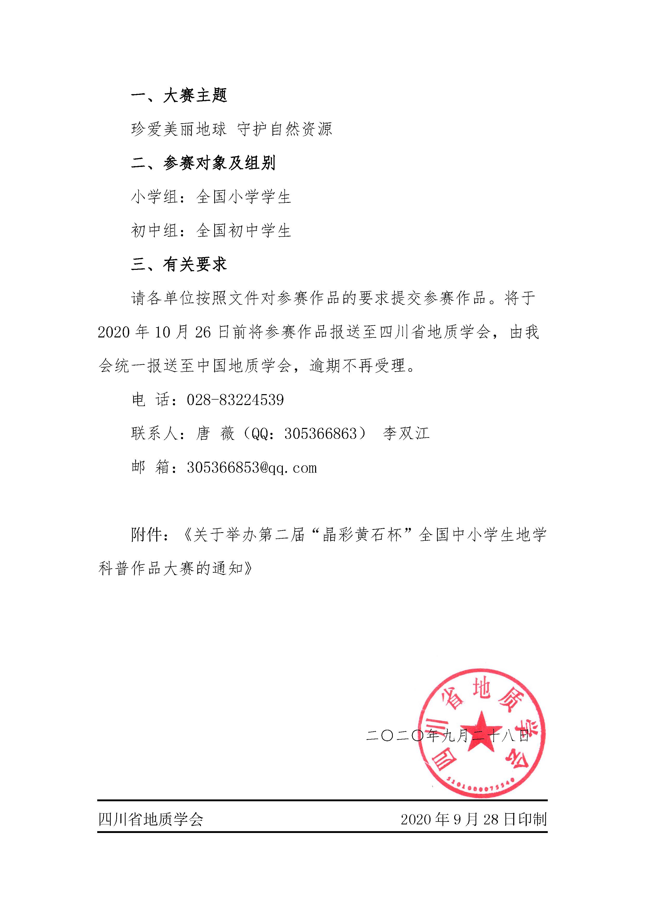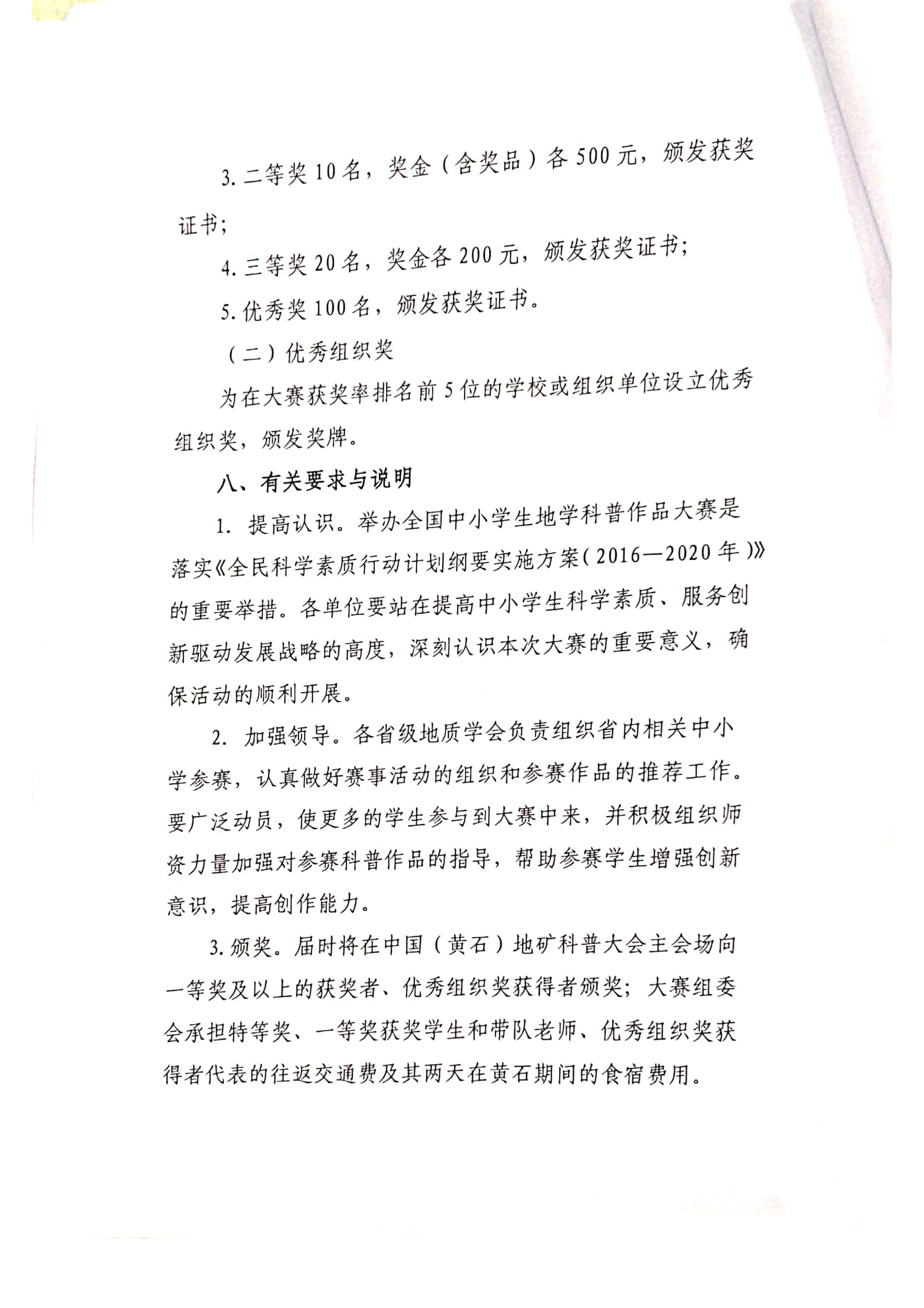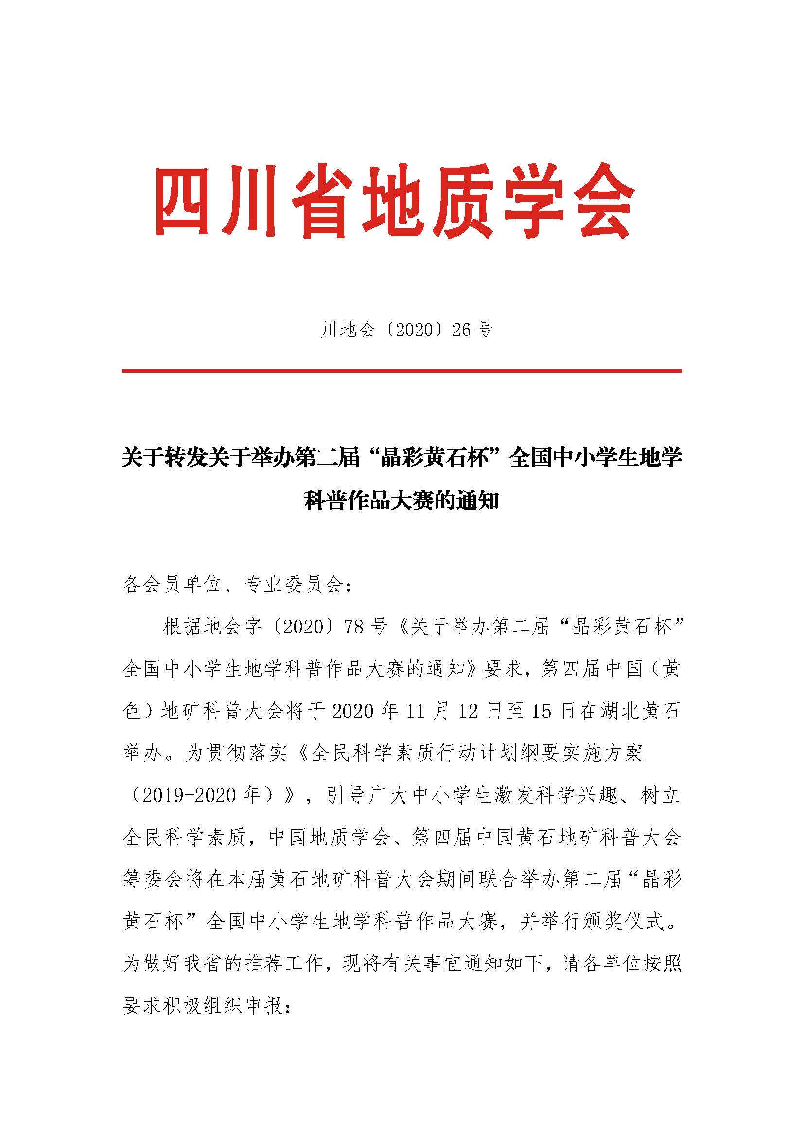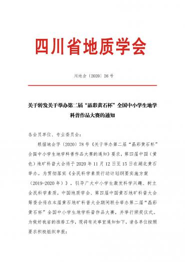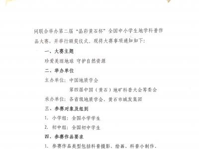 关于转发关于举办第二届“晶彩黄石杯”全国中小学生地学科普作品大赛的通知