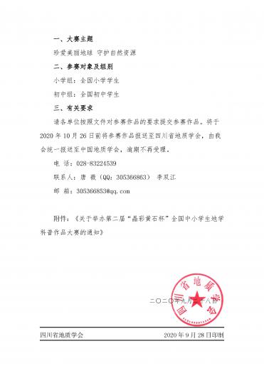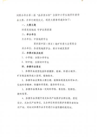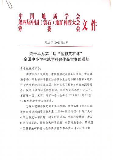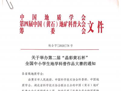> 学会公告 > 关于转发关于举办第二届“晶彩黄石杯”全国中小学生地学科普作品大赛的通知 正文