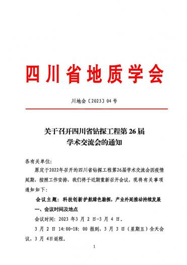 > 学会公告 > 关于召开四川省钻探工程第26届学术交流会的通知 正文