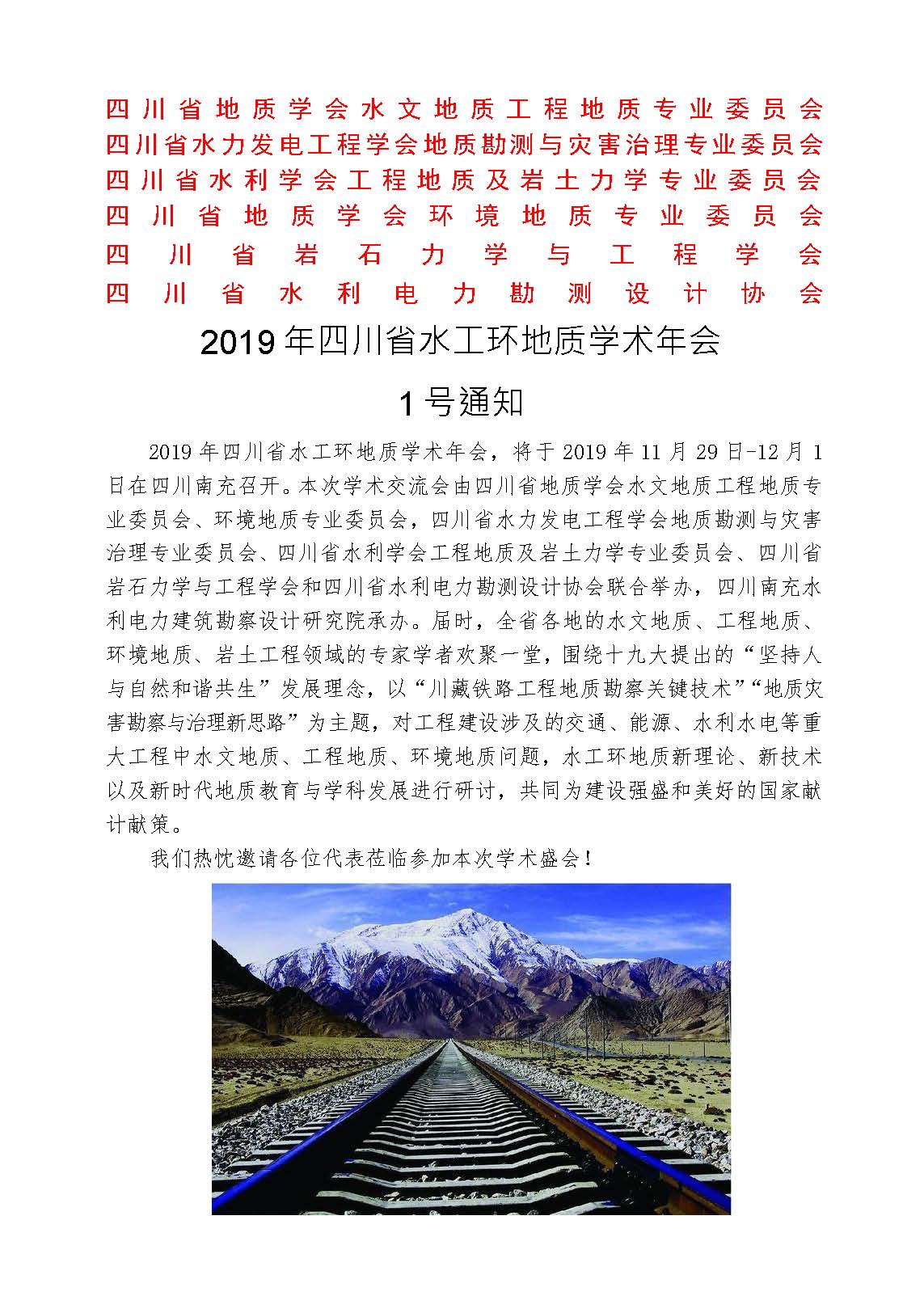 > 学会公告 > 2019年四川省水工环地质学术年会1号通知 正文