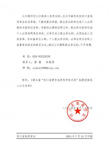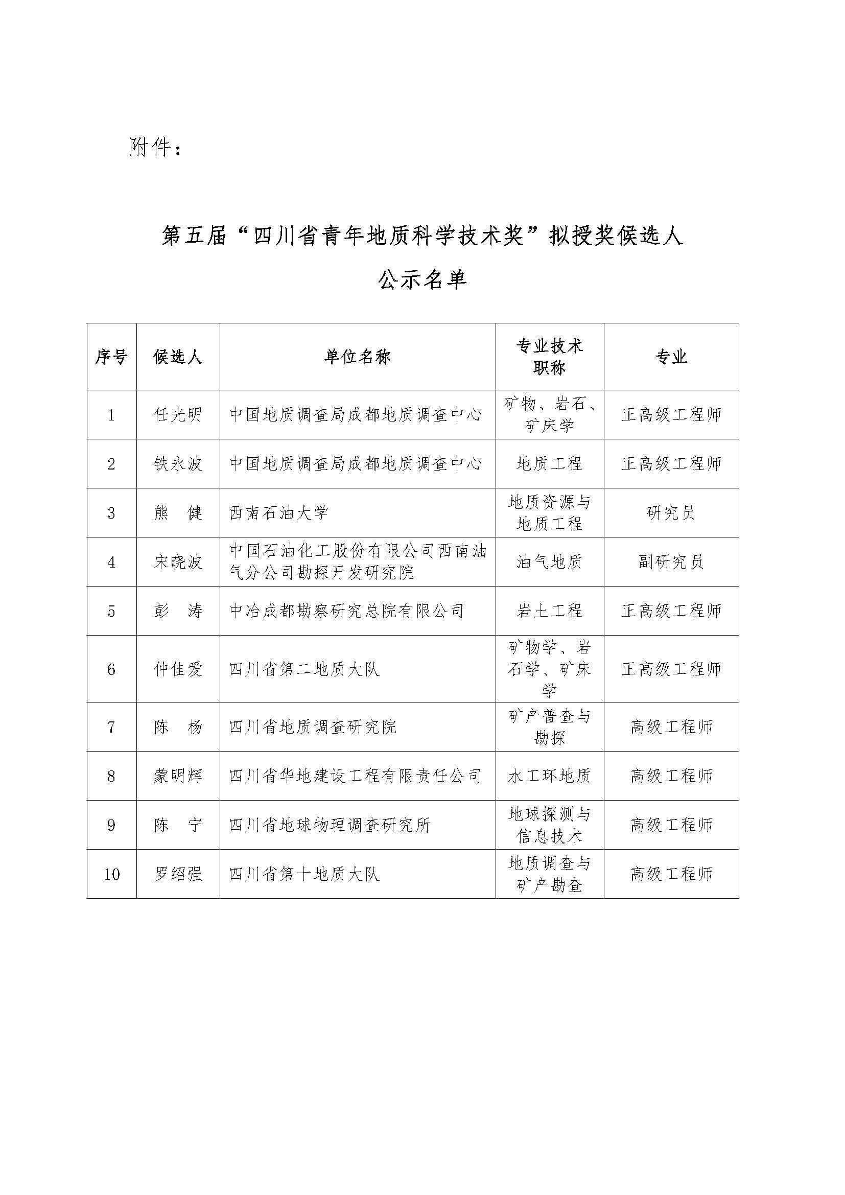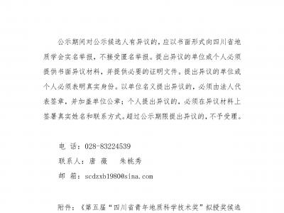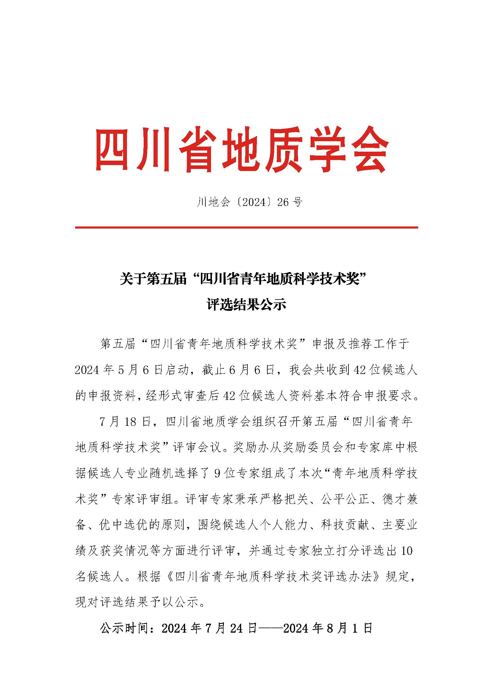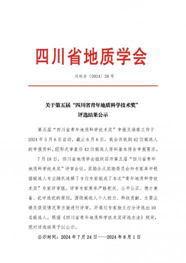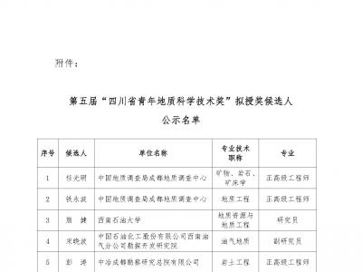 关于第五届“四川省青年地质科学技术奖” 评选结果公示