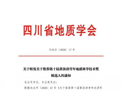 关于转发关于推荐第十届黄汲清青年地质科学技术奖的通知