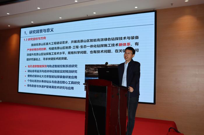 会上,成都理工大学王胜教授作了题为“基于钻进过程声振信号的岩性智能实时识别研究”的报告,生动详细地解释了钻具振动与所钻地层特性之间的关系。中国地质科学院探矿工艺研究所探矿技术研究室主任吴金生介绍了“小直径深孔随钻定向纠斜技术在地质钻探中的应用”,为解决小直径深孔地质岩心钻探孔斜难题,探矿工艺研究所开展了小直径深孔有缆随钻定向纠斜技术研究,并在多个矿区成功实施了随钻定向纠斜技术,取得较好的应用效果,实现地质目标,具有示范与推广作用。本次会议共11位专家学者作了专题报告,参会人员围绕钻探技术应用、各类热点难点问题、解决方法措施等进行了热烈讨论、交流,相互学习,气氛活跃。